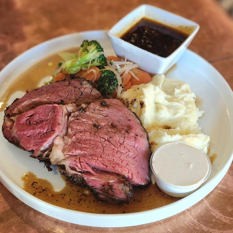 Mixed vegetables, whipped potato, au jus, horseradish cream