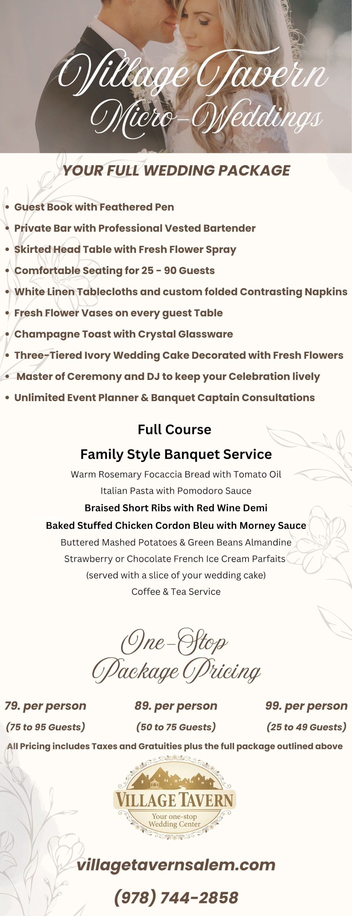 All Pricing includes Taxes and gratuities, plus the full package outlined above.